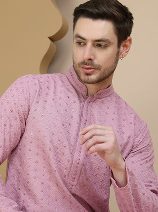 Men Purple Chikankari Embroidered and Sequence Kurta Only