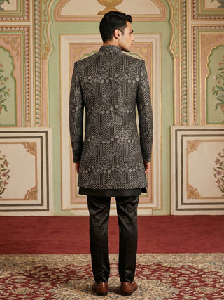 Men’s Black Heavily Embroidered Indo-Western Set
