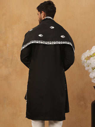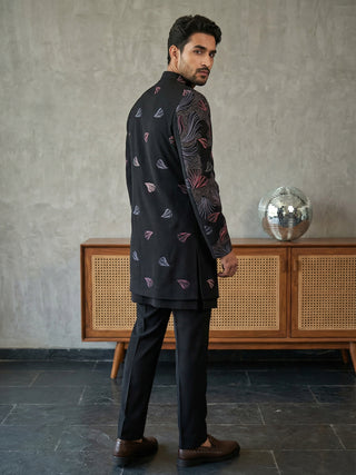Men Black Embroidered Indo-Western Set
