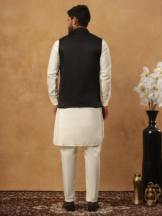 Embroidered Nehru Jacket Set with Solid Kurta Pyjama