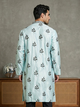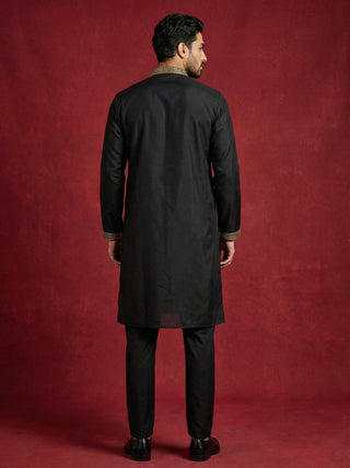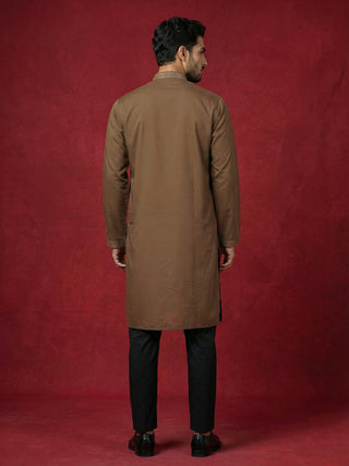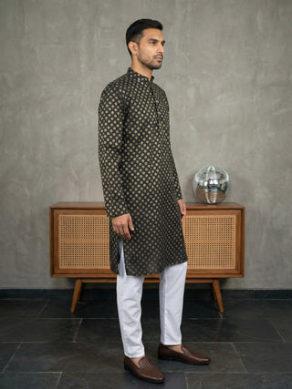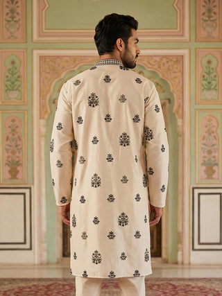 Silk Blend Kurta with Golden Eagle Embroidery