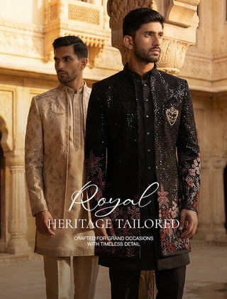 Men’s Peacock Heavily Embroidered Indo-Western Set