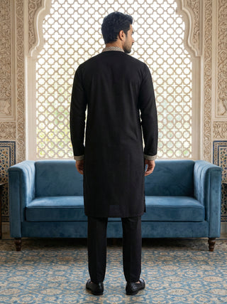 Black Threadwork Nehru Jacket with Kurta Pyjama