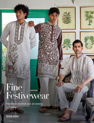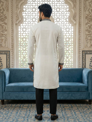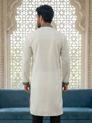 Ivory Embroidered Nehru Jacket Kurta Set for men