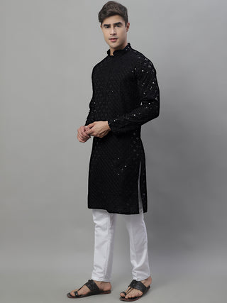 Men's Black Chikankari Embroidered and Sequence Kurtas