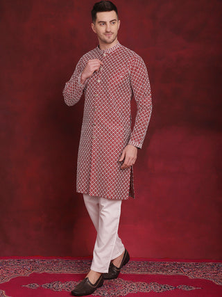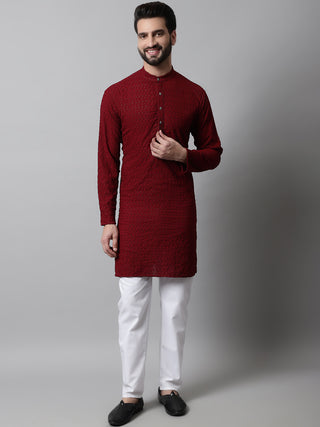 Men's Maroon Chikankari Embroidered Kurtas