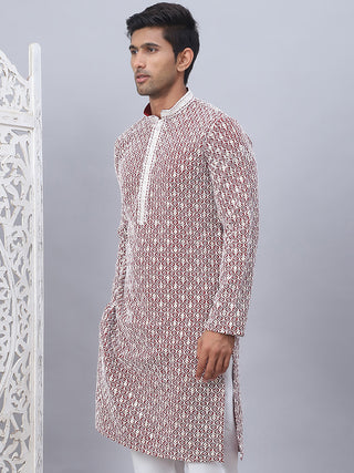 Men's Maroon Chikankari Embroidered and Sequence Kurtas