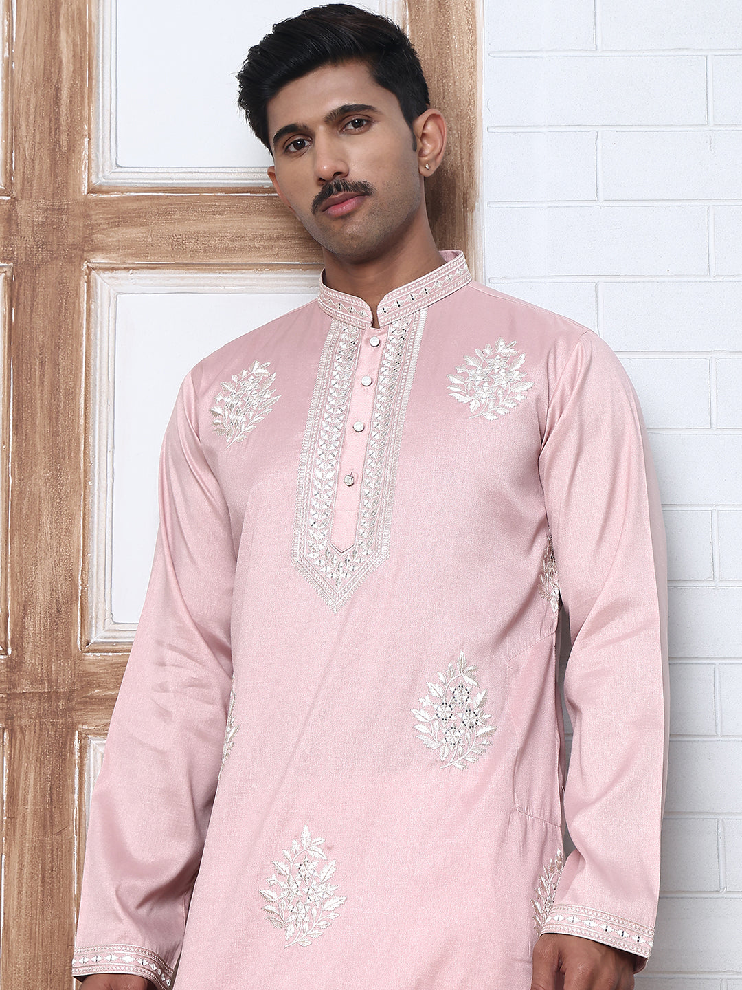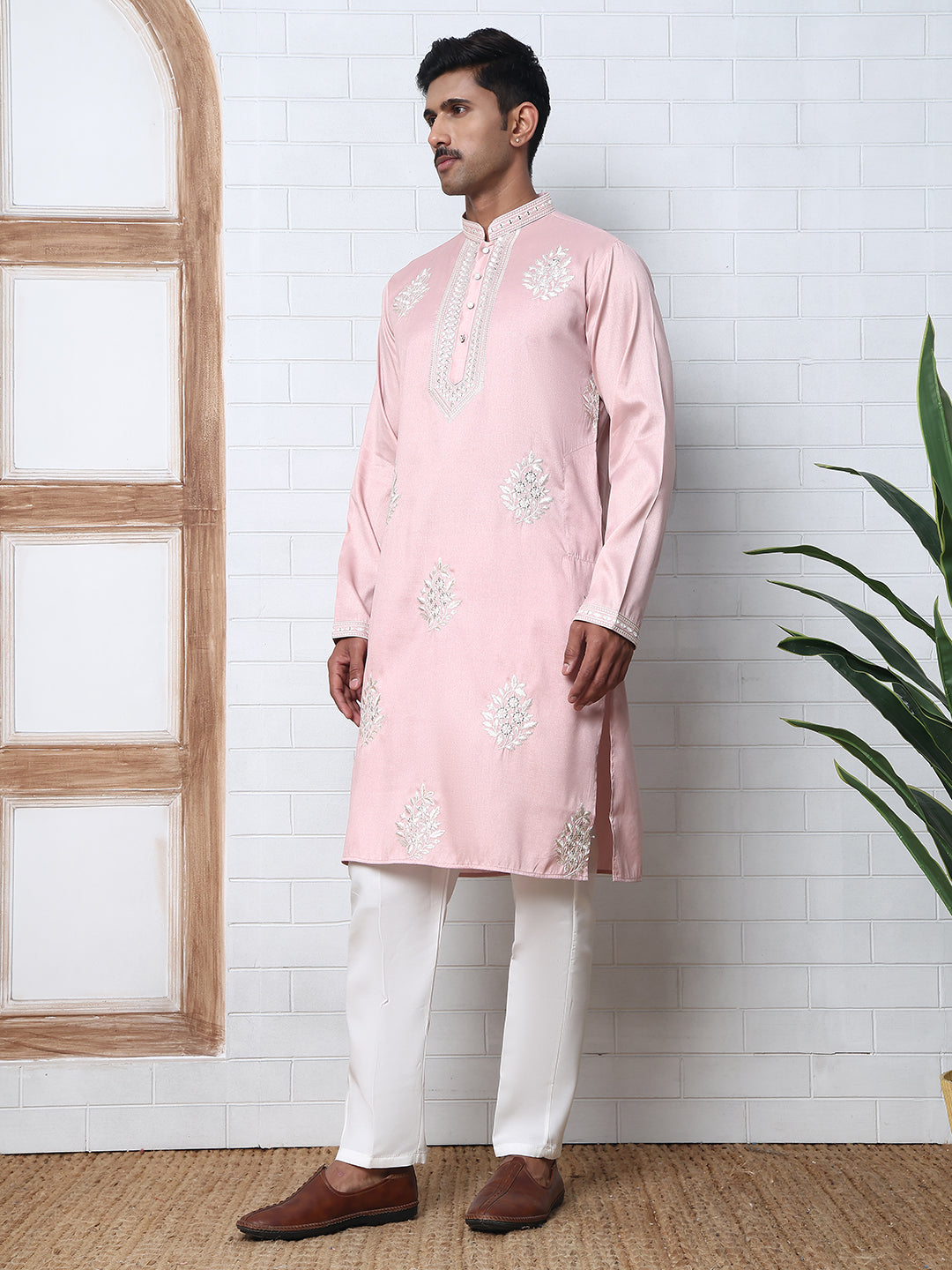 Men’s Silk Blend Ethnic Embroidered Kurta Pyjama