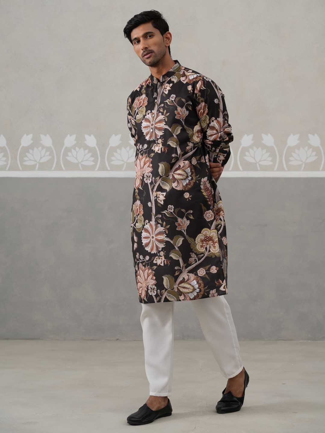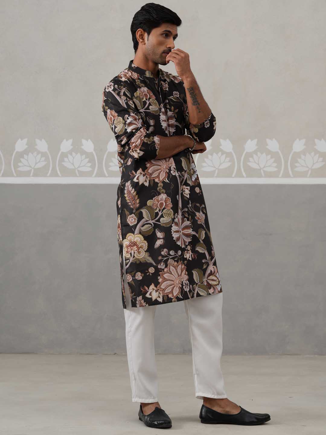 Men's Floral Printed Cotton Straight Kurta Pyjama Set