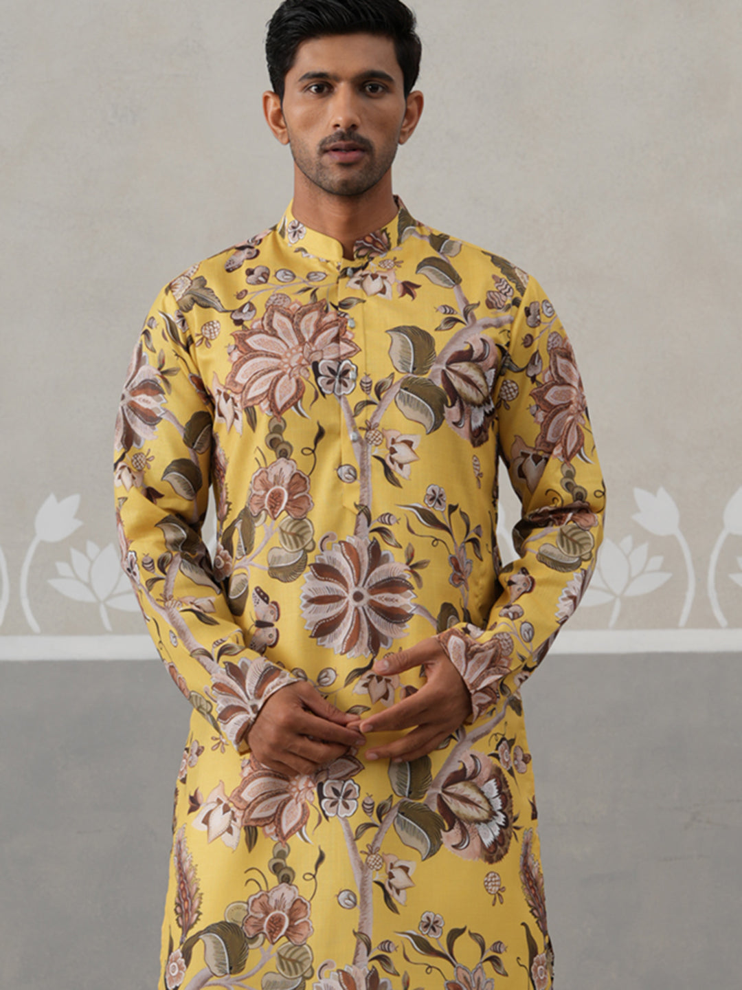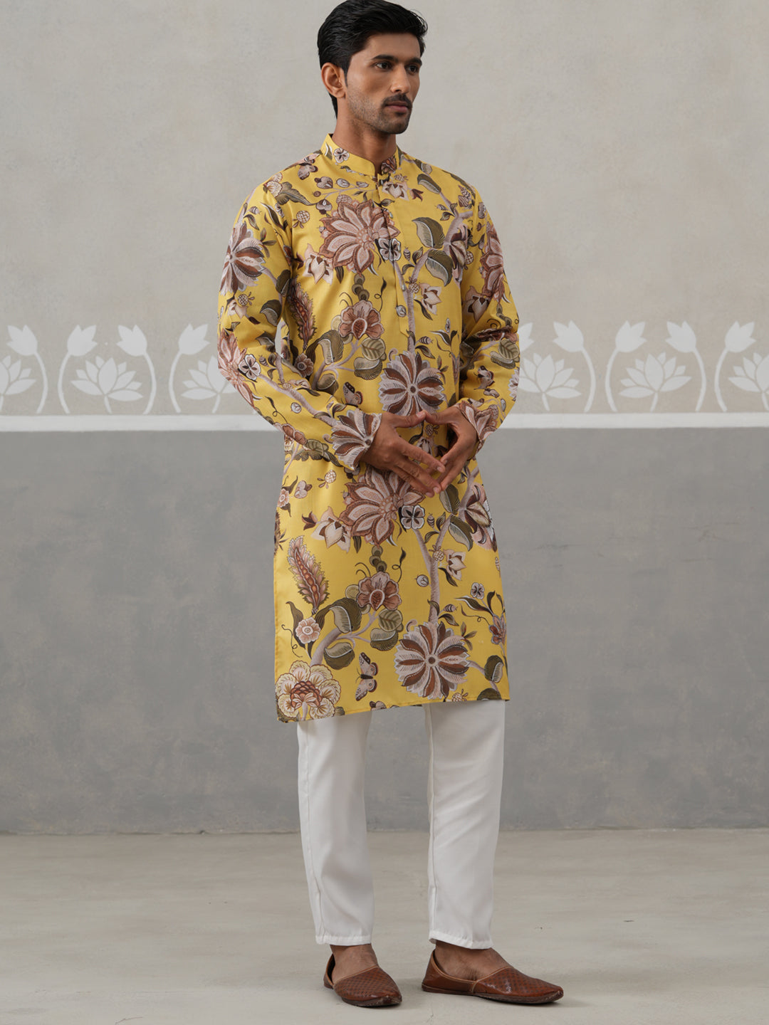 Men's Floral Printed Cotton Straight Kurta Pyjama Set