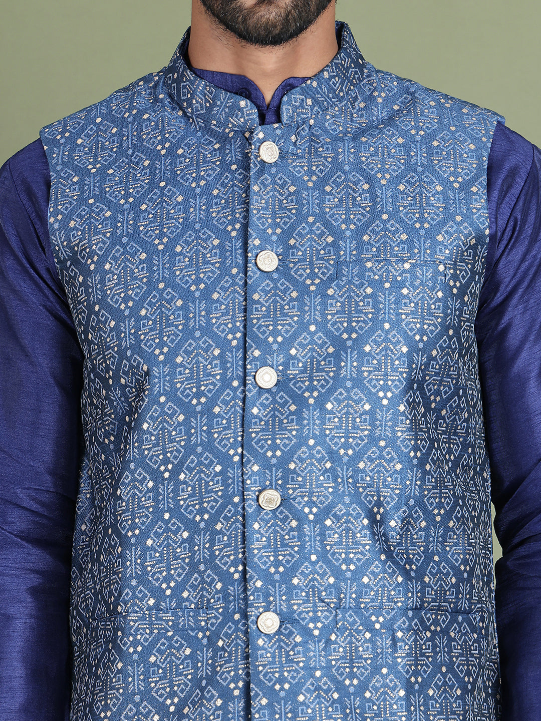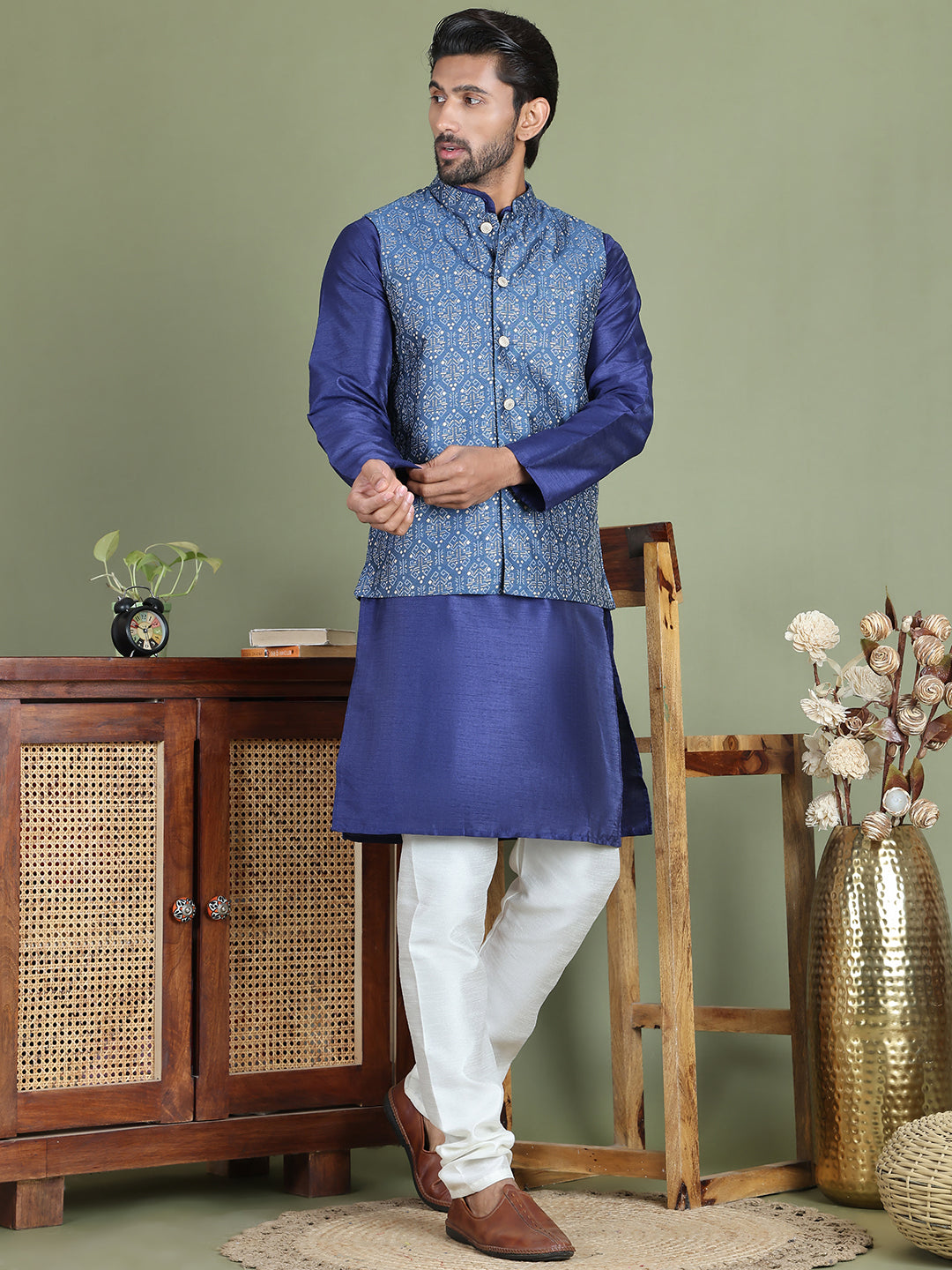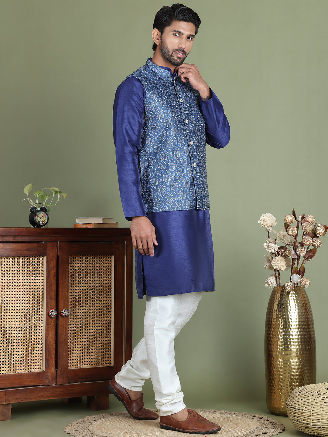 Men's Printed Nehru Jacket With Kurta Pyjama Set