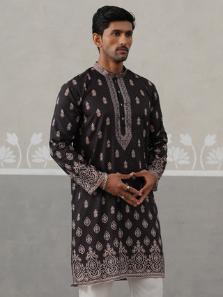 Men Black Chikankari Embroidered and Sequence Kurta Only