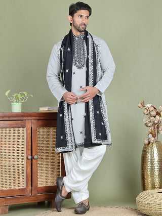 Gurmeet Choudhary in Men's Sequins Chikankari Embroidered Kurta with Pyjama