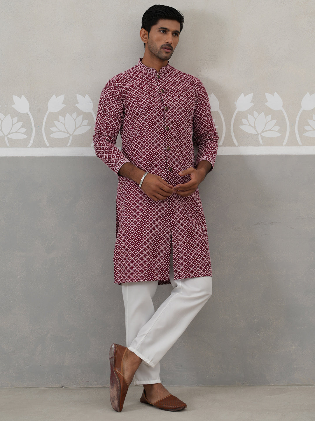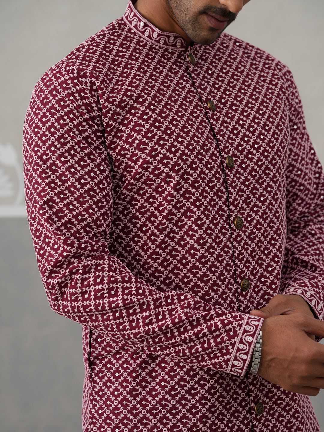Sequin Chikankari Front Open Kurta With Pyjamas