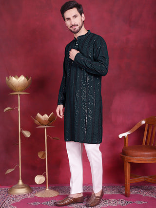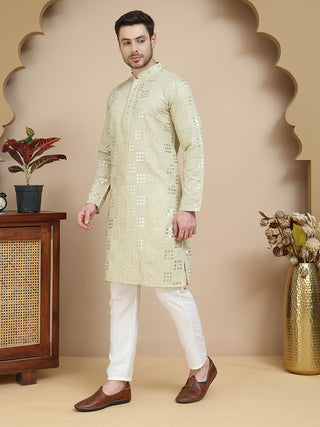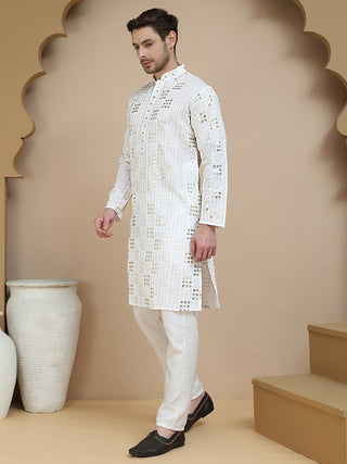Men's Sequins Chikankari Embroidered Kurta with Pyjama