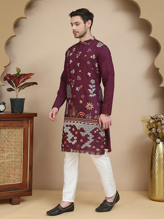 Men's Maroon Chikankari Embroidered Kurta With Pyjama