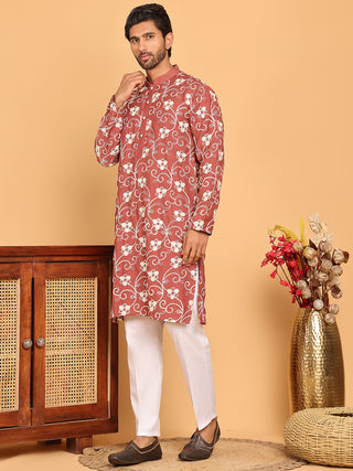 Floral Embroidered Straight Kurta Pyjama Set For Men
