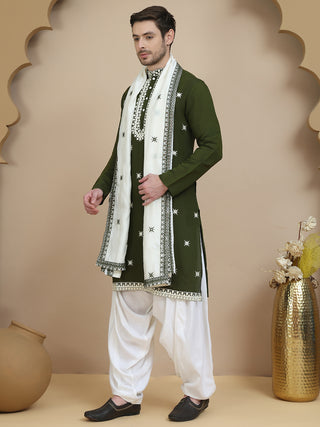 Embroidered Silk Blend Kurta Salwar and Dupatta Set for Men