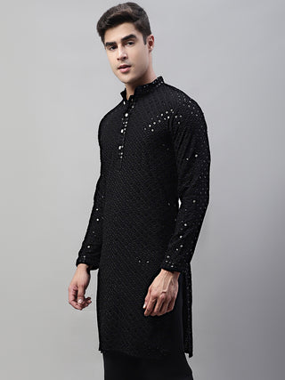 Men's Black Chikankari Embroidered and Sequence Kurtas