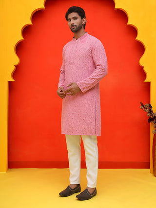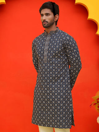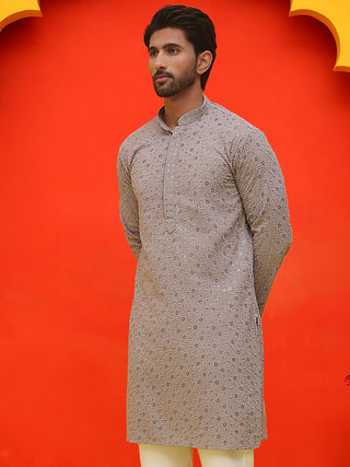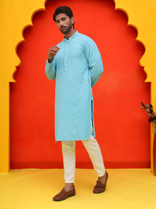 Sequin Embroidered Pure Cotton Kurta with Pyjamas
