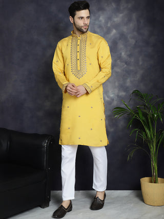 Sequin Embroidered Pure Cotton Kurta with Pyjamas