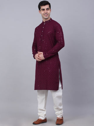 Men Purple Chikankari Embroidered and Sequence Kurta with Churidar