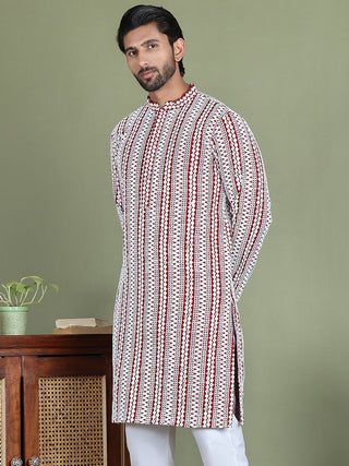 Men's White Chikankari Embroidered and Sequence Kurtas