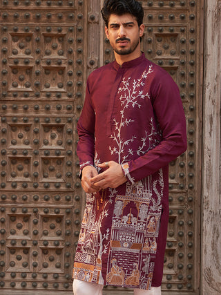 Classic Magenta Kurta Pyjama With Embroidered Waistcoat