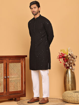 Men's Black Chikankari Embroidered and Sequence Kurta with Pyjama.