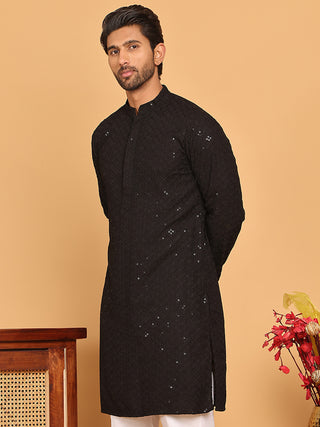 Men's Black Chikankari Embroidered and Sequence Kurtas