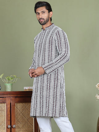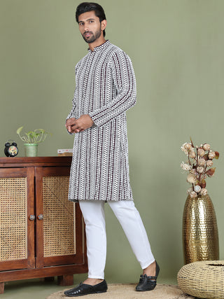 Embroidered Chikankari and Sequence Kurta with Pyjama for Men
