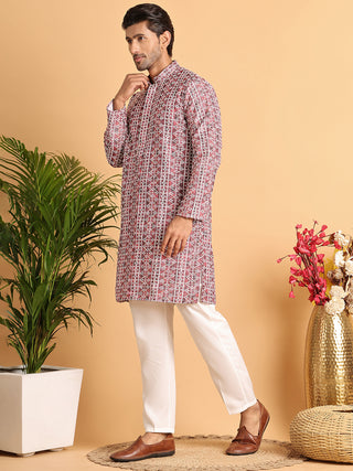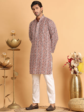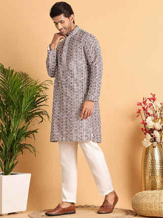 Embroidered & Printed Kurta Set For Men