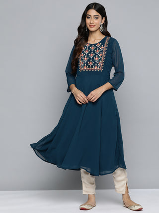 Jompers Floral Embroidered Thread Work Floral Georgette Anarkali Kurta