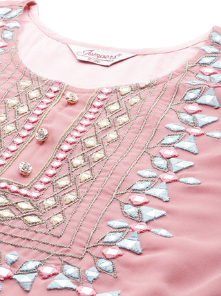 Jompers Geometric Embroidered Mirror Work Georgette Anarkali Kurta