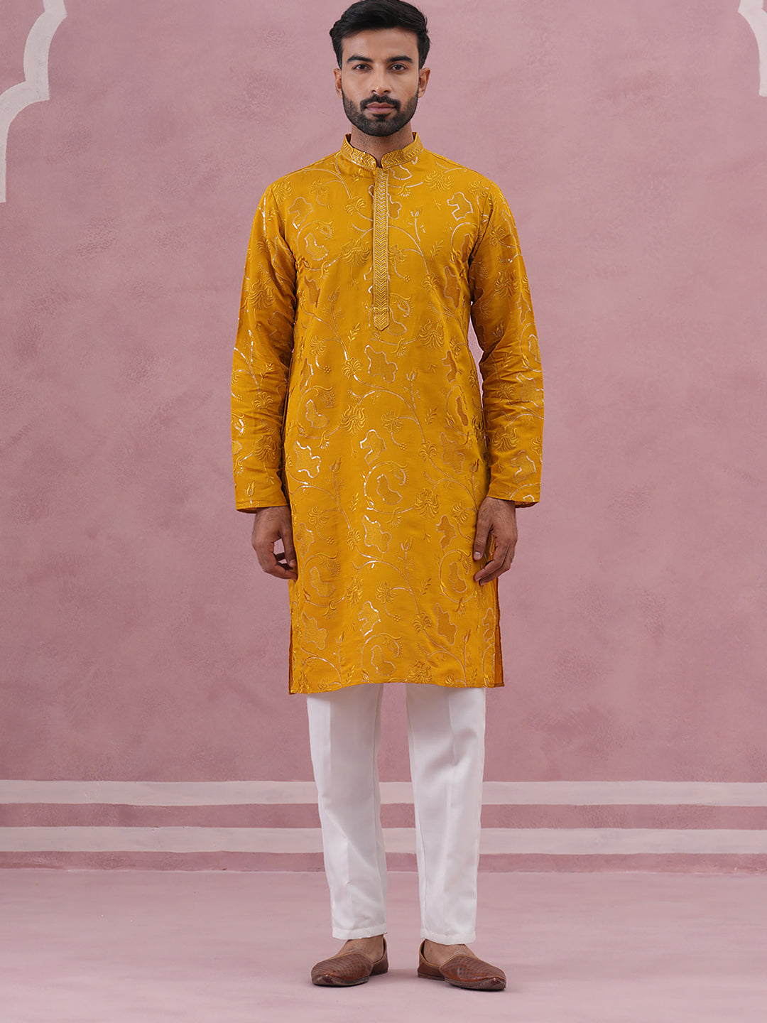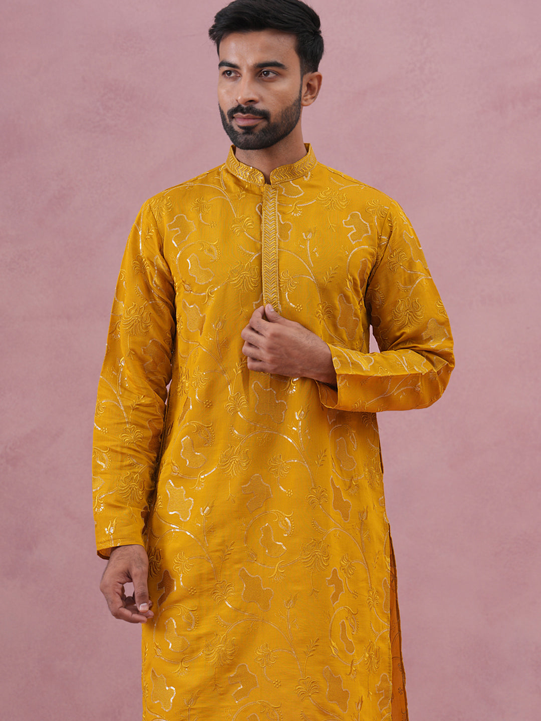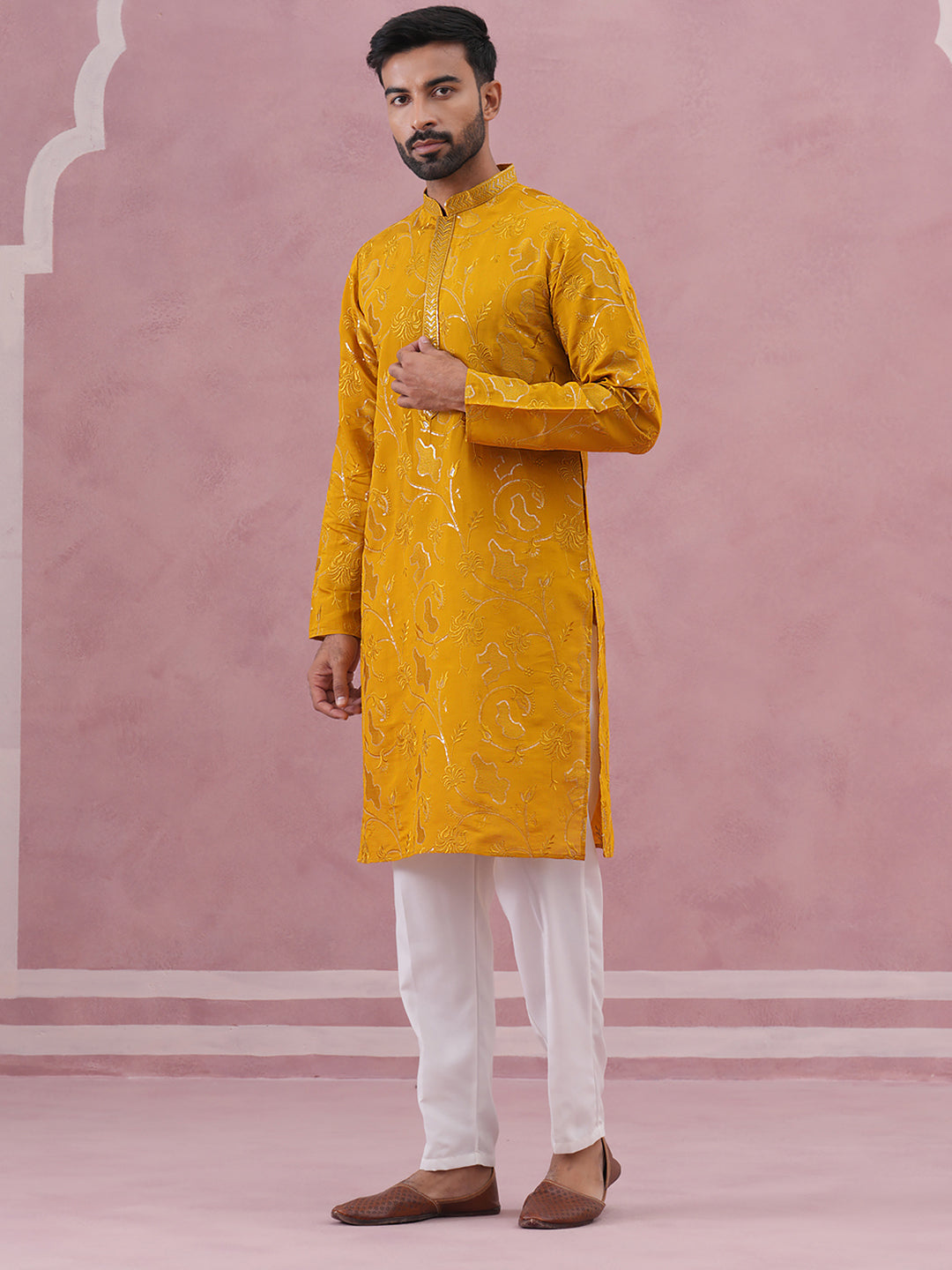 Men's Embroidered Silk Blend Kurta Pyjama Set