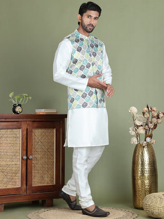Printed Nehru Jacket With Kurta Pyjama Set for Men