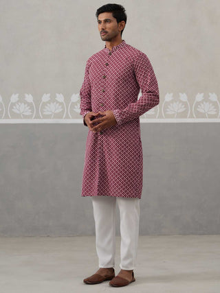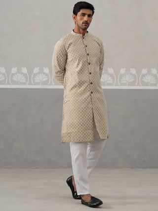 Men's Sequin Chikankari Front Open Kurta With Pyjamas