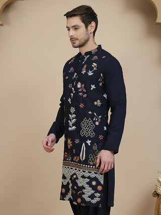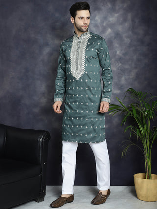 Men's Peacock Blue Chikankari Embroidered Kurta With Pyjama