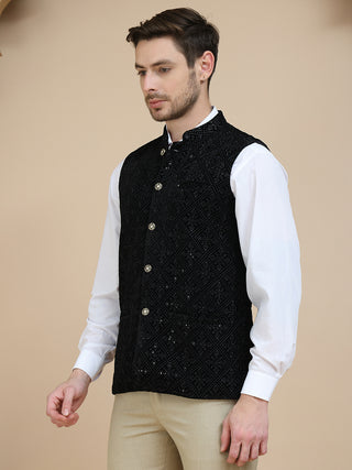 Men's Sequins Velvet Nehru Jacket