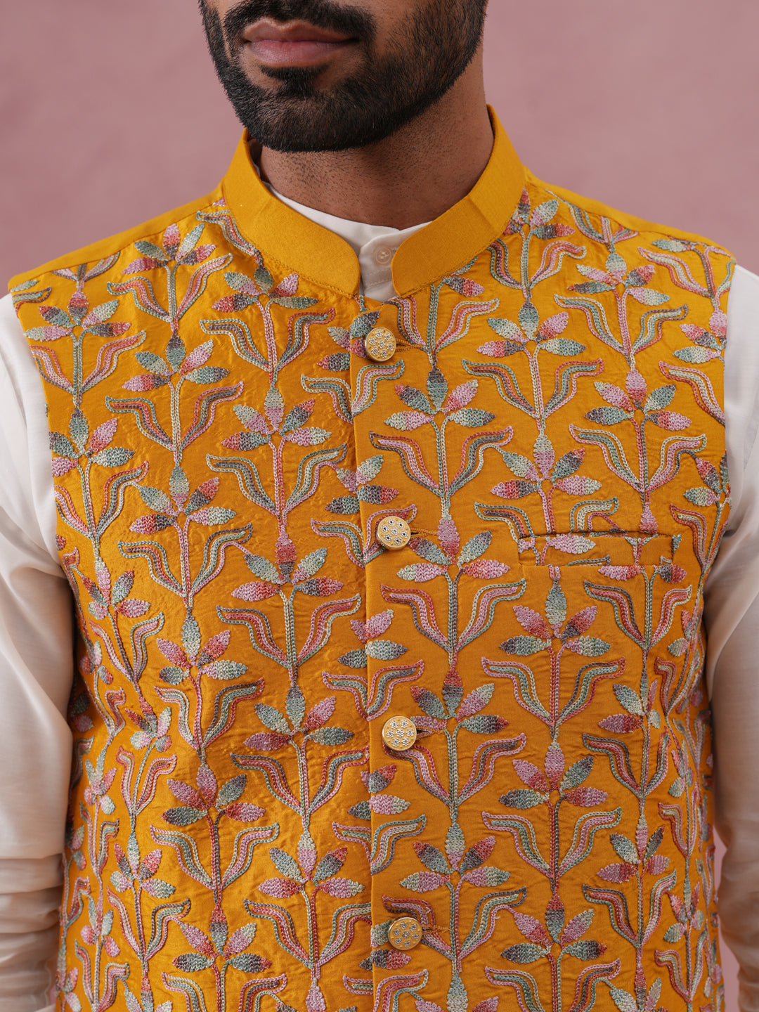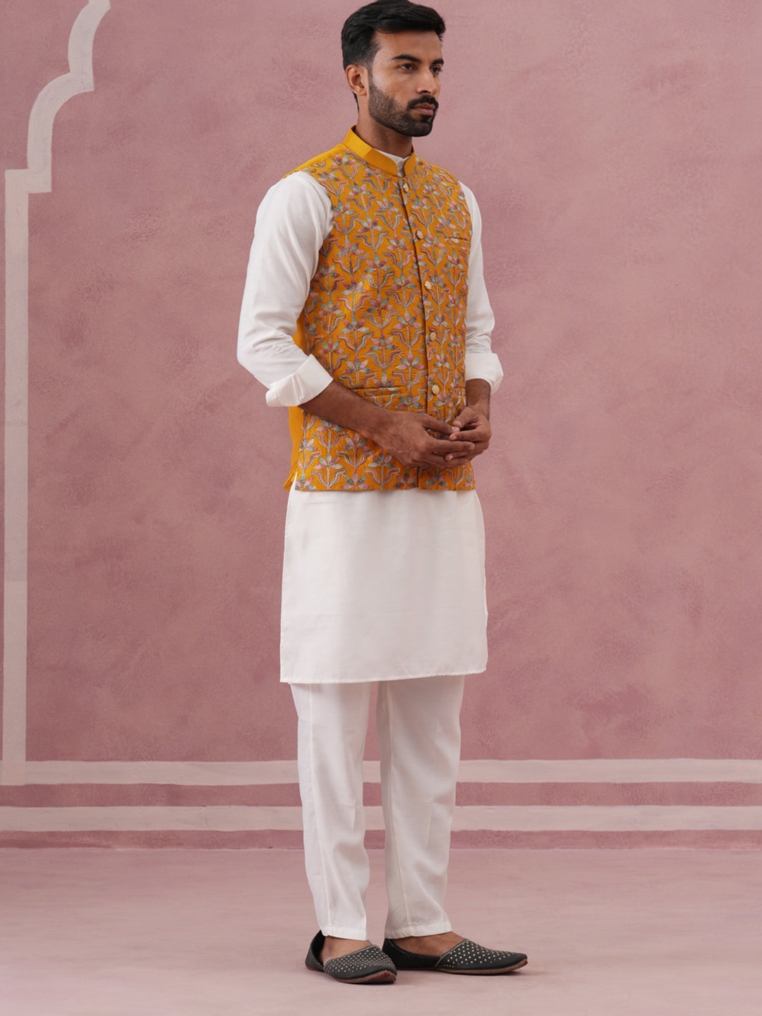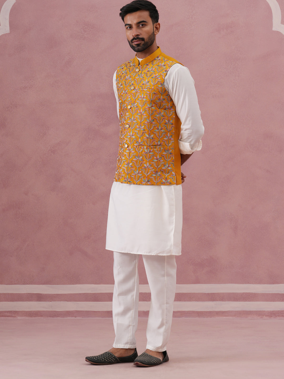Festive Embroidered Nehru Jacket with Classic Kurta Pyjama