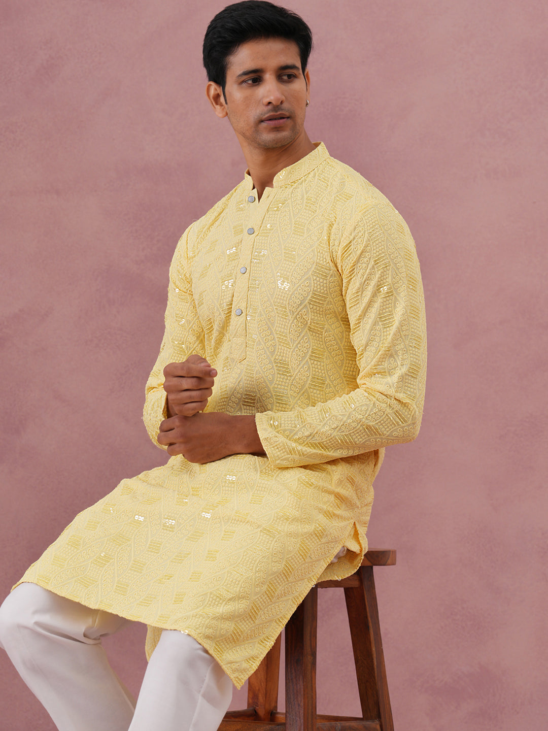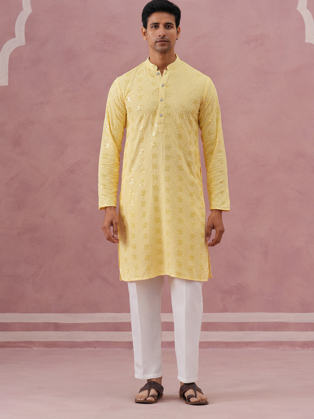 Sequin-Embellished Rayon Embroidered Kurta Pyjama