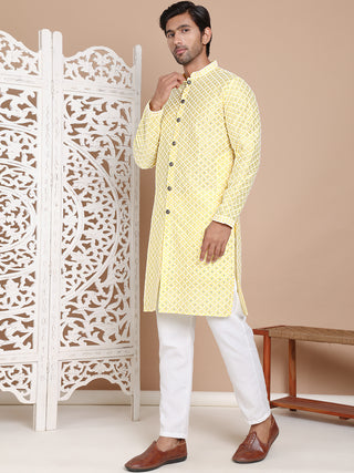 Men's Mustard Chikankari Embroidered Kurta With Pyjama