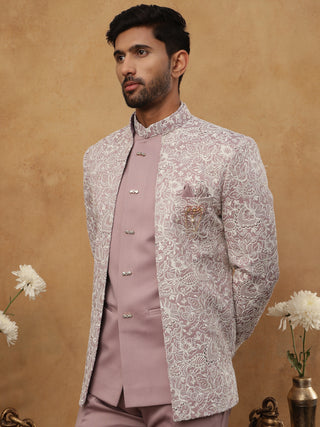 Men's Lavender Embroidered Indo-Western Set