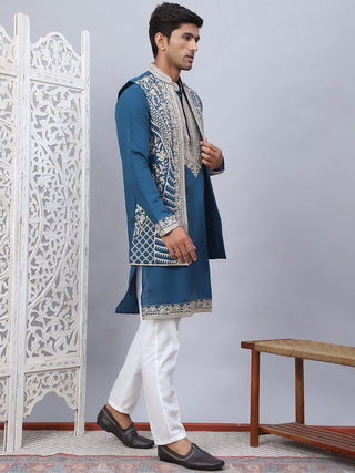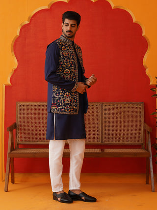 Embroidered Waistcoat & Solid Kurta Pyjama For Men