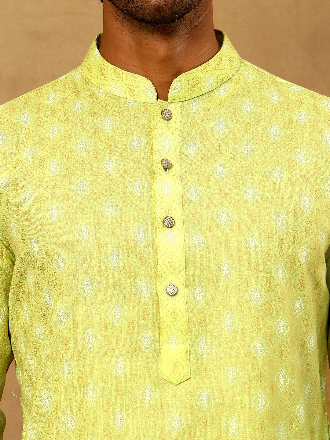Classic Ethnic Print Cotton Blend Kurta Pyjama Set