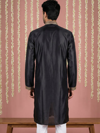 Black Silk Blend Embroidered Kurta