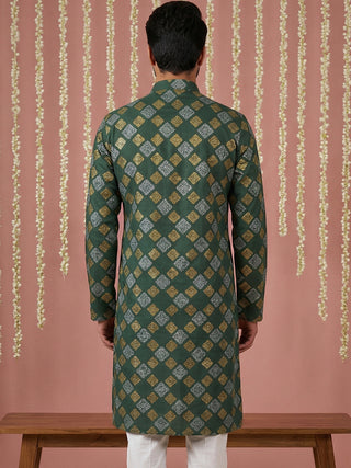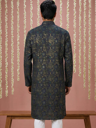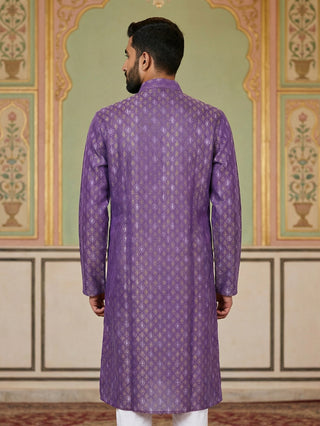 Men Cotton Blend Kurta with Foil Print