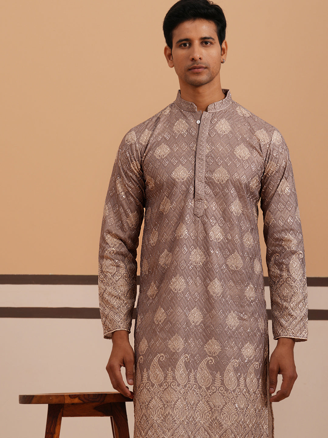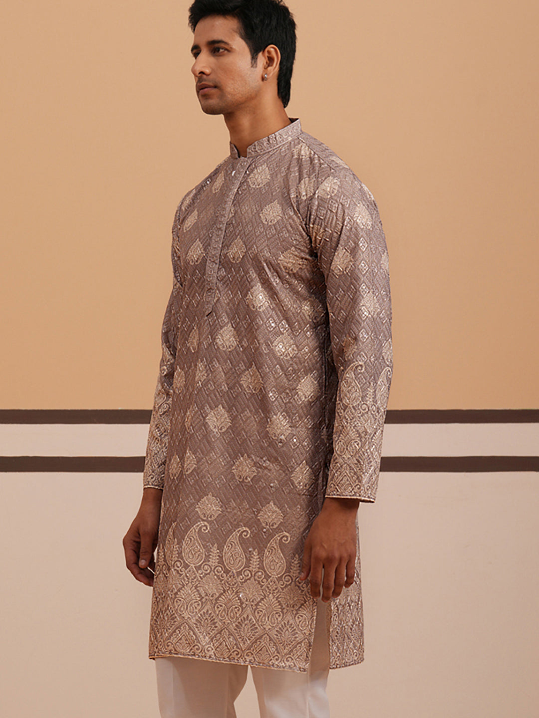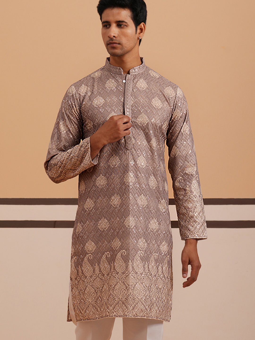 Embroidered Cotton-Blend Kurta with Paisley Design