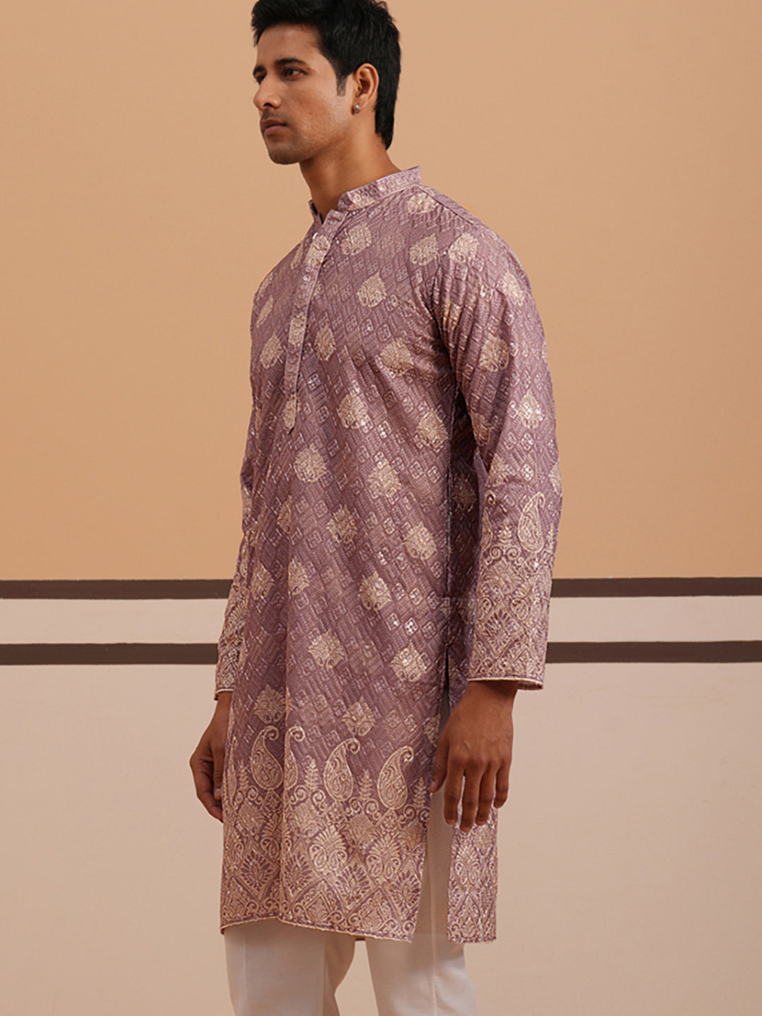 Embroidered Cotton-Blend Kurta with Paisley Design