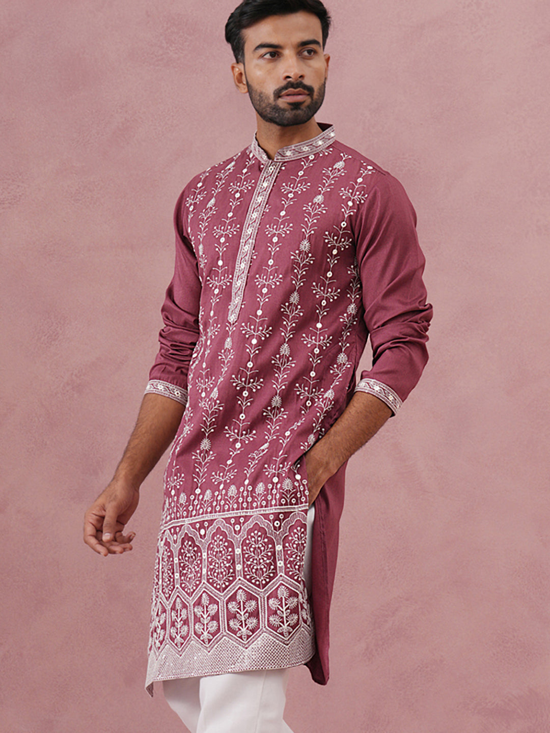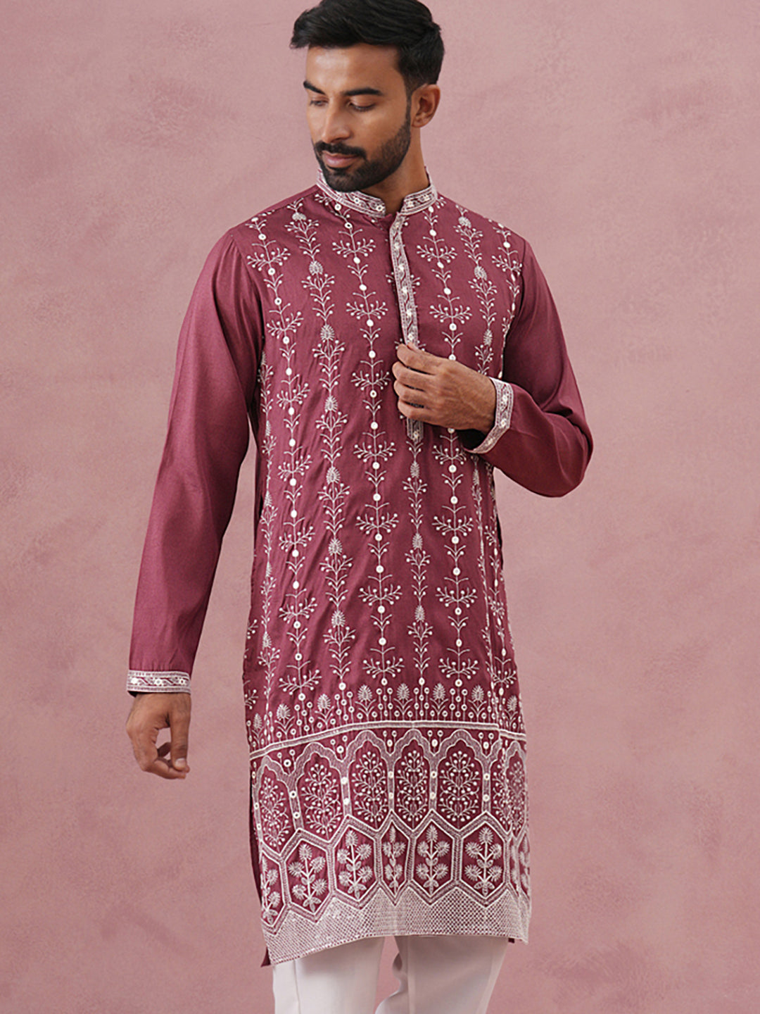 Festive Silk Blend Kurta with Sequins Work